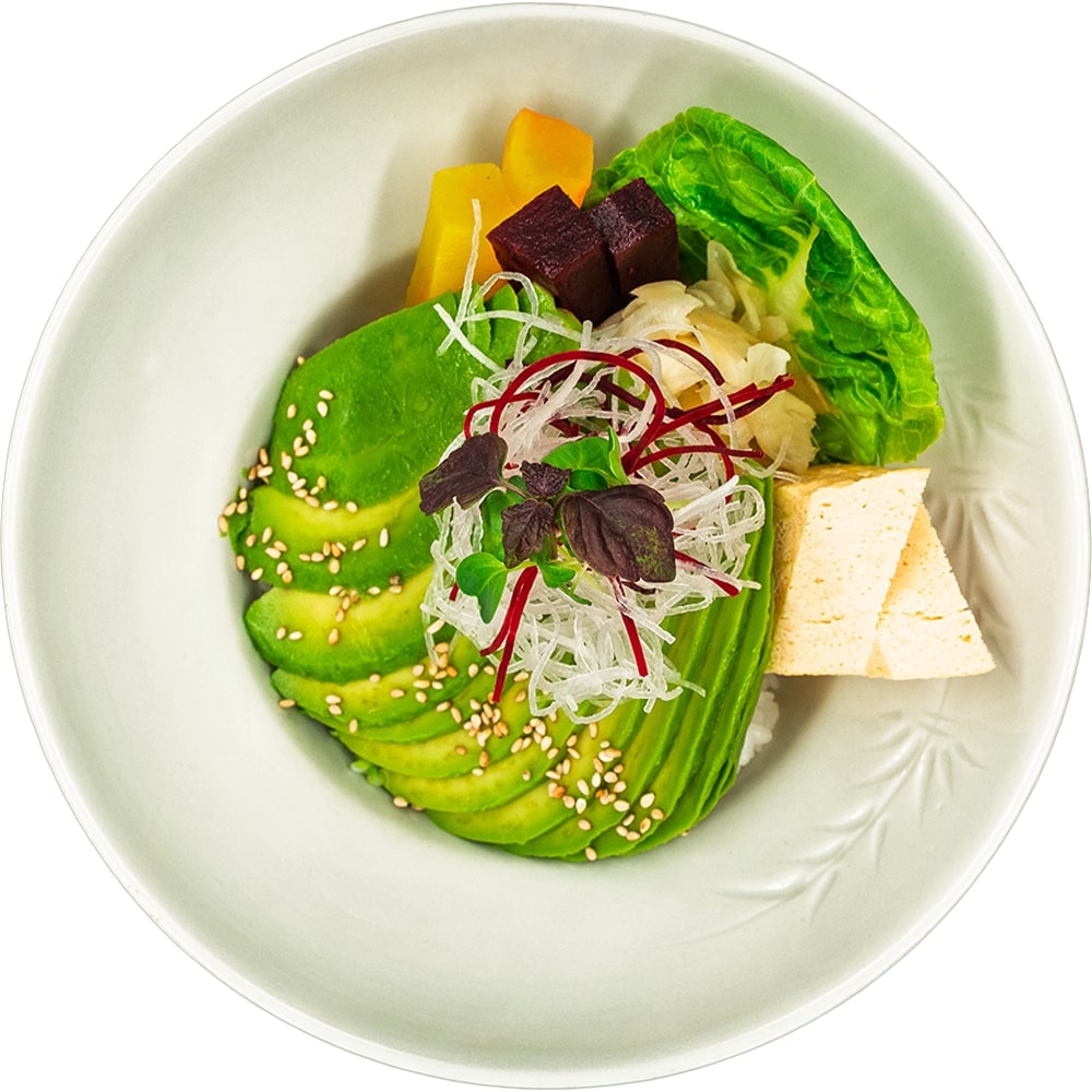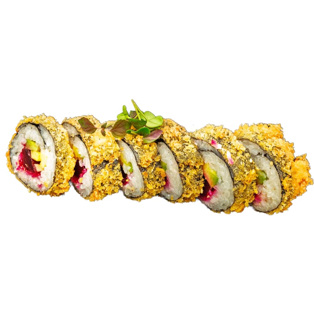 Avocado, Rote Beete, Mangostreifen, paniert(crispy roll with avocado, mango stripes, beet root)