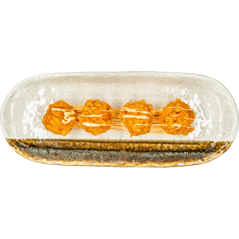frittierte Oktopusbällchen, Chili Mayo, Bonitoflocken(fried round dumplings with octopus, Bonito, chili mayo)