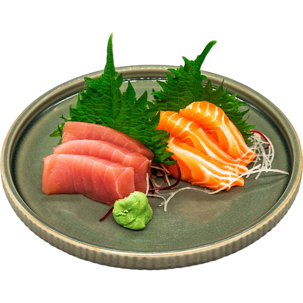 4 Nigiri + 1 Uramaki + 6 Sashimi(4 pieces Nigiri sushi, 1 inside out roll, 6 slices sashimi)