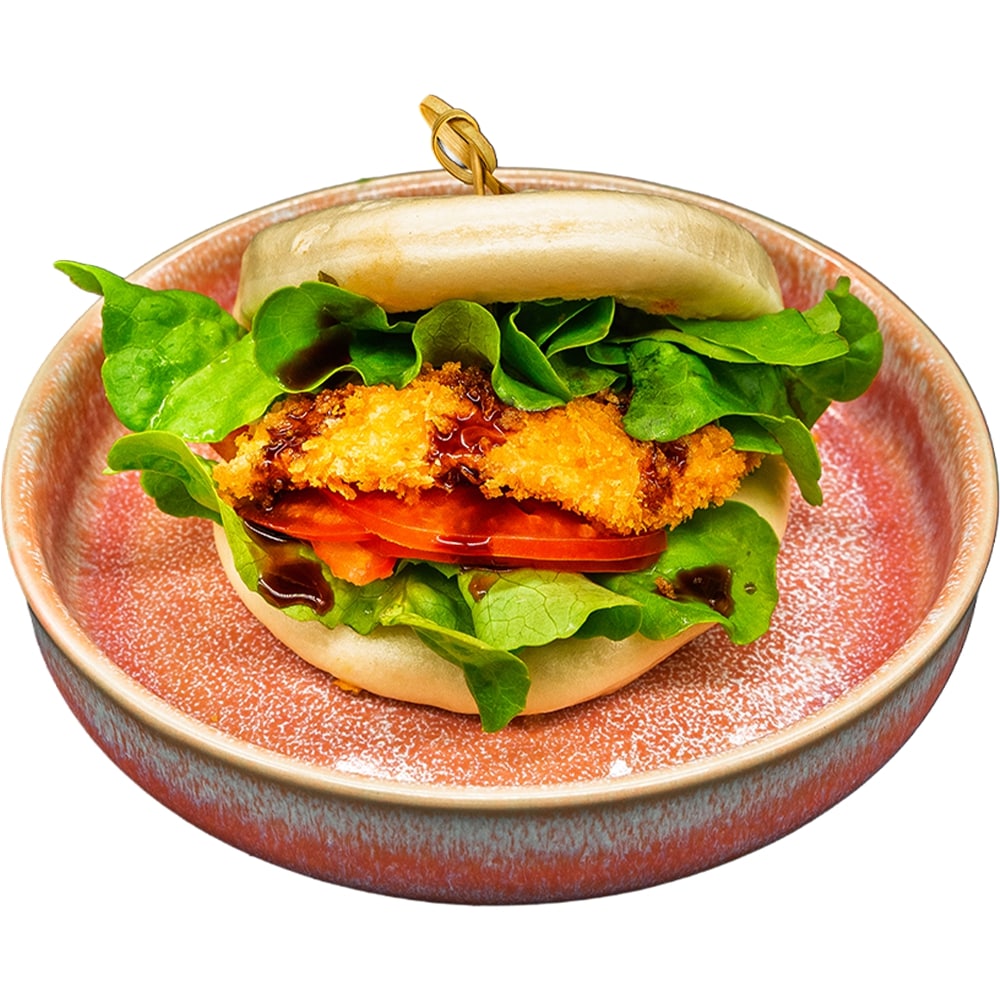 Pancakes mit knusprigem Hähnchen, pikanter Sauce. (crispy chicken wrapped in pancakes with sweet & sour chili sauce)
