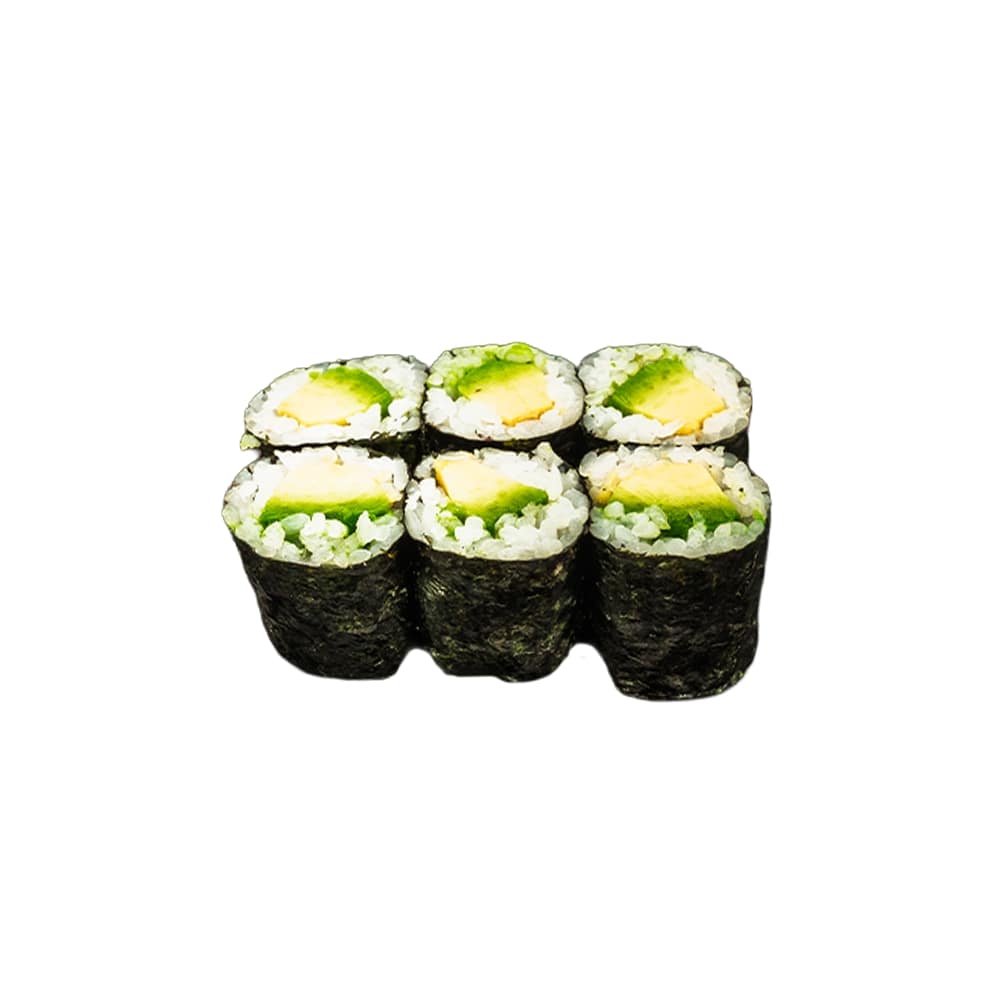 4 Nigiri + Tamago-Uramaki, Avocado Hosomaki(4 pieces Nigiri sushi, 1 inside out roll, avocado Hoso Maki)