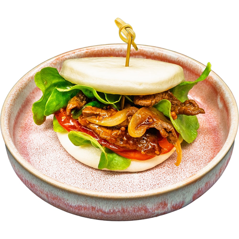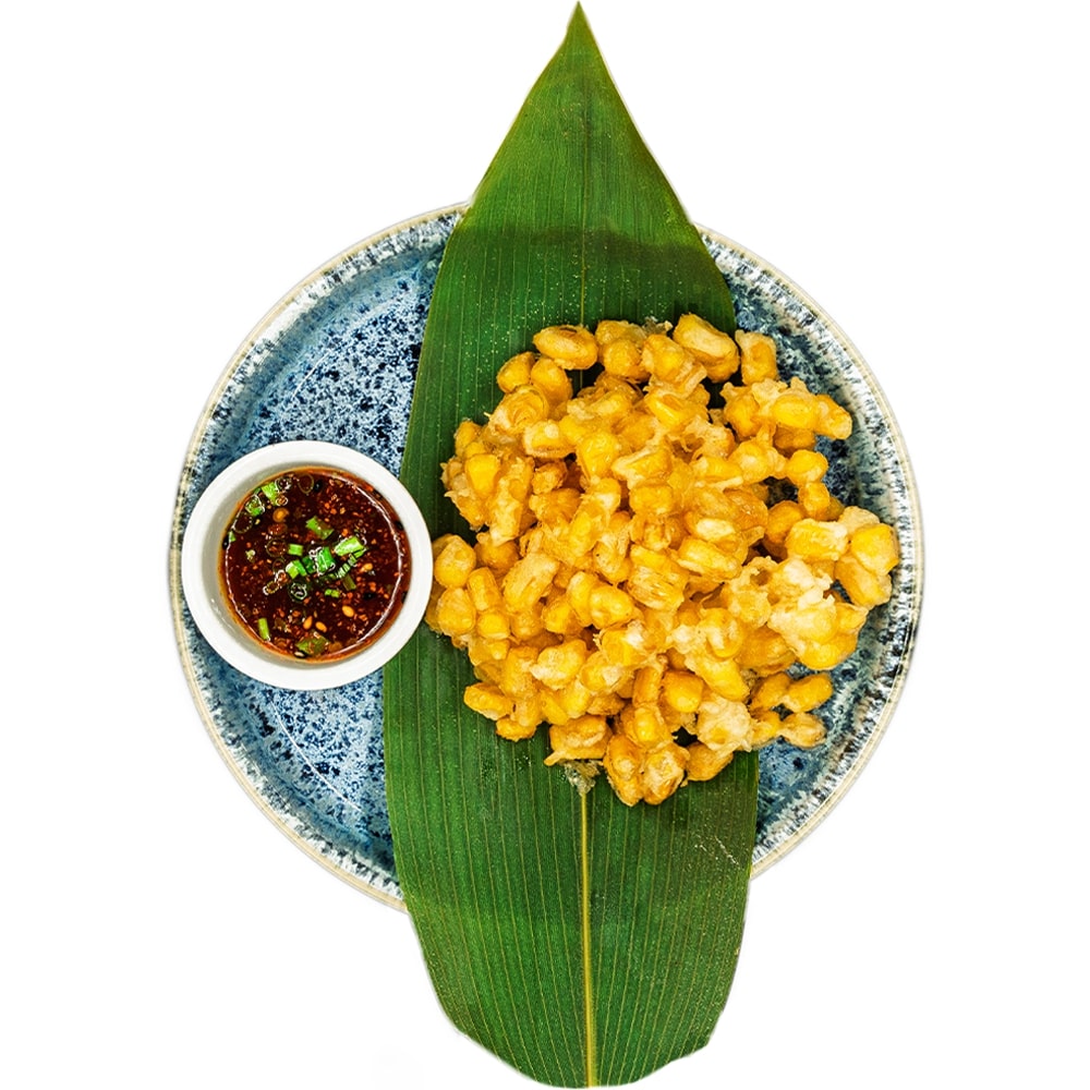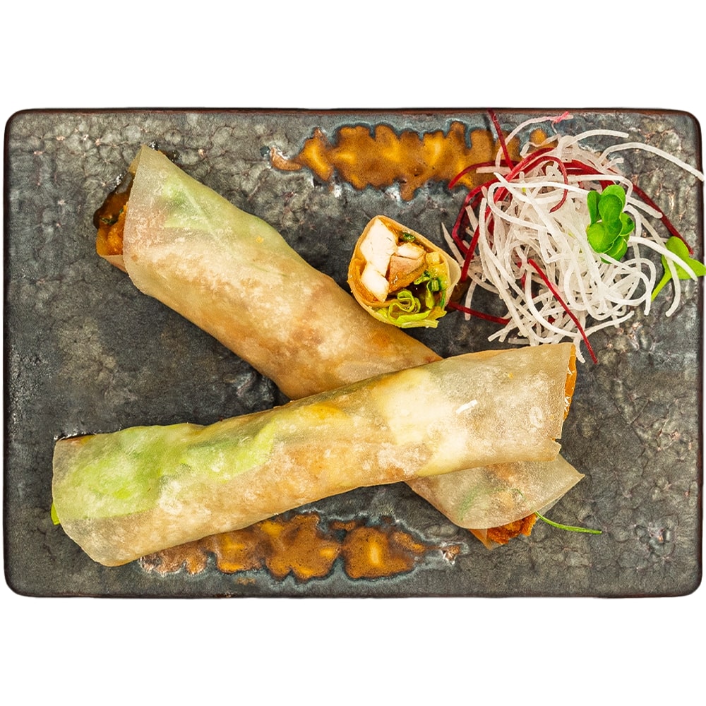 Pancakes mit knusprigem Hähnchen, pikanter Sauce. (crispy chicken wrapped in pancakes with sweet & sour chili sauce)