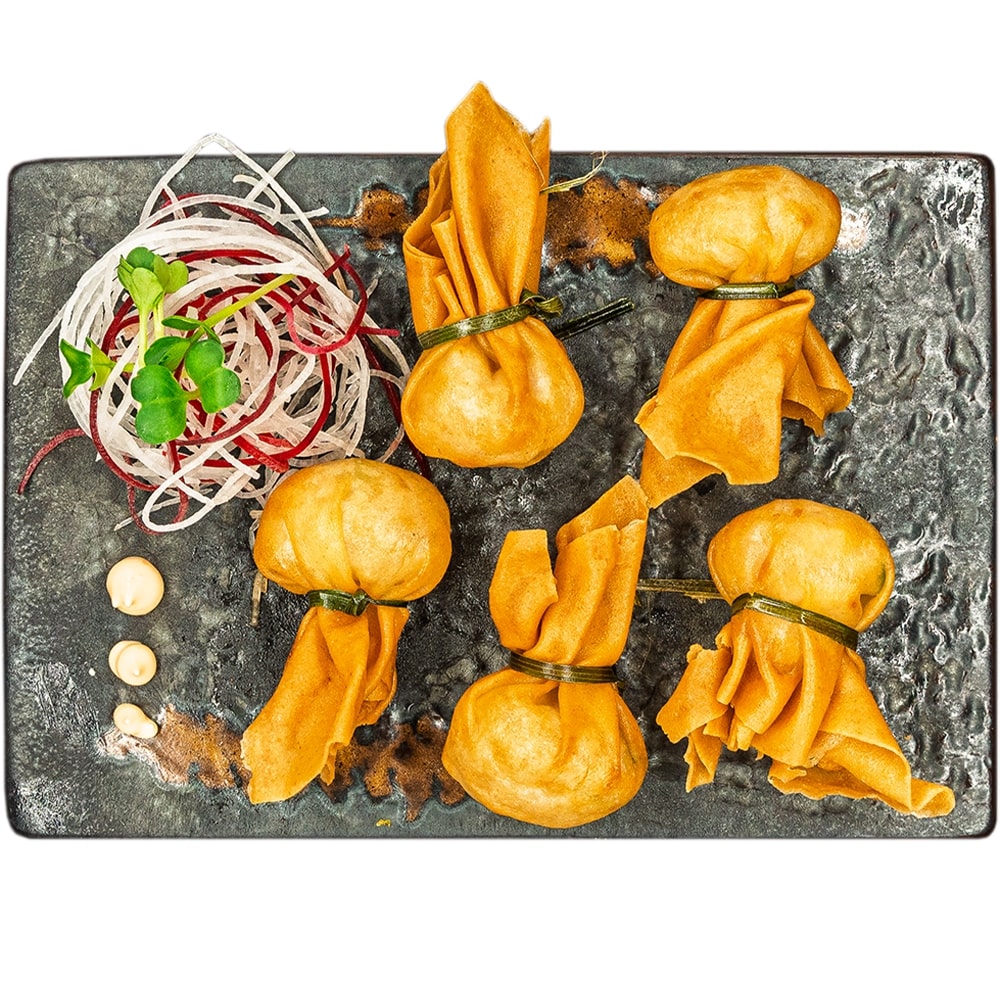 Gebratene Teigtaschen mit Hühnerfleisch und Gemüsefüllung. (fried dumplings. (filled with chicken and vegetables))