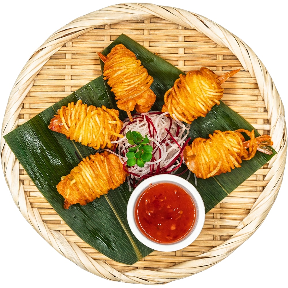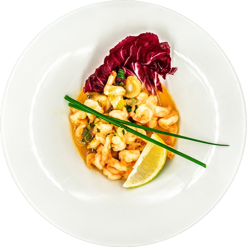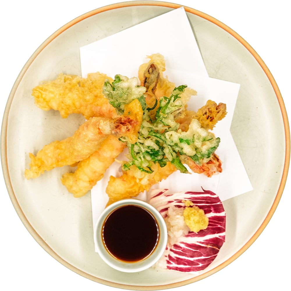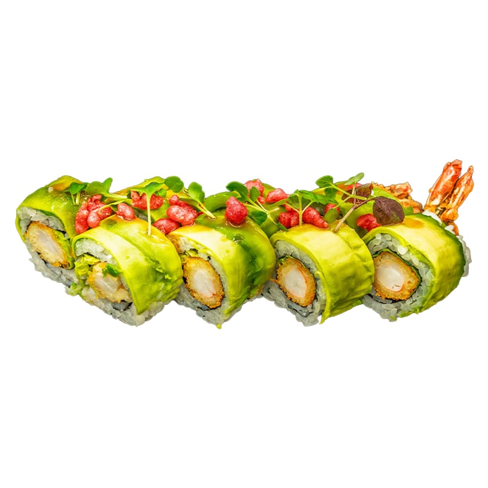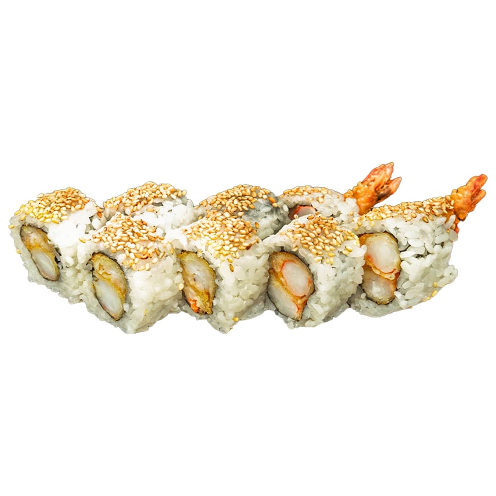 Frittierte Garnelen, Frischkäse, Avocado, paniert(fried prawns, cream cheese, avocado, panko breaded)