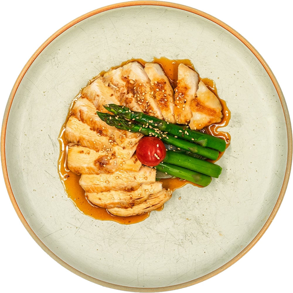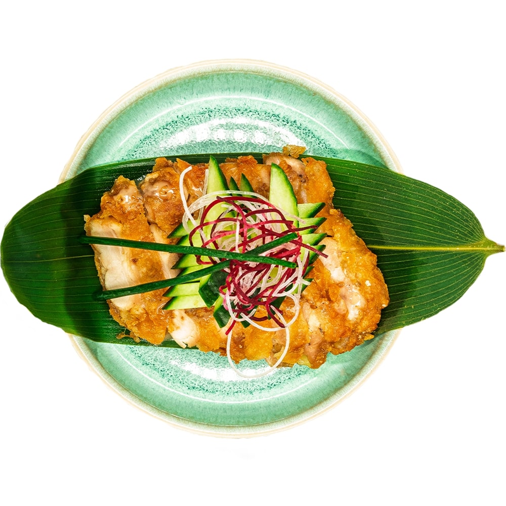 Knuspriges Hähnchen, Gurken, Sesamsauce. (crispy chicken, cucumber, sesame sauce)