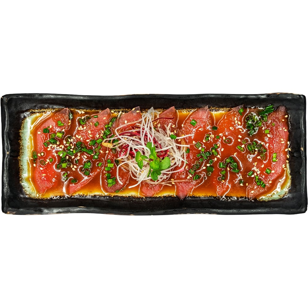 Thunfisch Carpaccio mit Ingwer-Sojasauce, Sesam(fine tuna Carpaccio with ginger soy sauce, sesame)